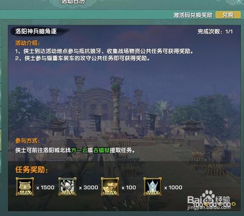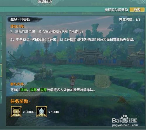 每天的战场日常活动,在成都、扬州、太原等各大主城处阵营接引人参加,每天的首胜会奖励3千威望,战场可以个人散排也可以组队重复参加,每次胜利都会获得1千威望,建议参加阵营的YY队这样胜率会高很多。