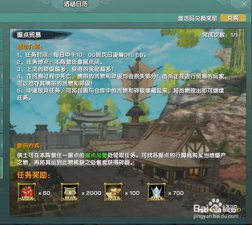 日常跑商任务,按ctrl+M键打开阵营地图,选择合适的跑商路线,在据点处找阵营总管领取任务,然后购买阵营任务特别跑商即可,每天可跑商三次每次奖励2000威望值。