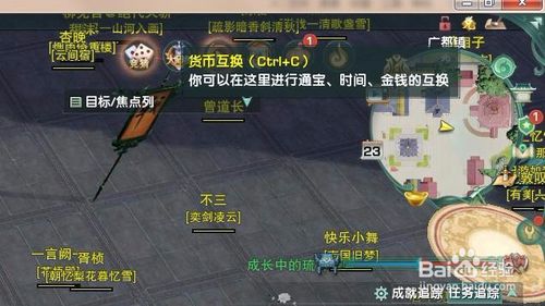 寻找功能NPC:按M键打开大地图,在右面的功能NPC列表里可以选择标记某NPC位置。就近询问城镇或门派中的守卫也是个不错的主意。当您和守卫对话询问或点击大地图NPC列表中的某位NPC后,在大地图上均会以绿点显示。