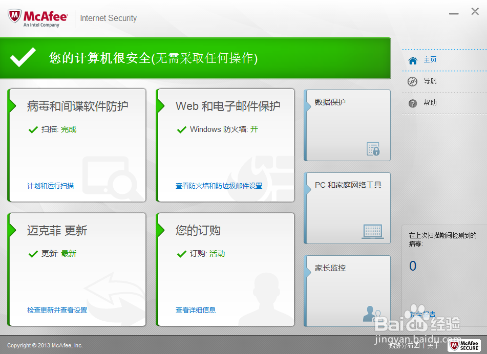 1、首先打开 计算机点击要设置的软件,打开迈克菲,点击【导航】-【防火墙】;
