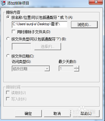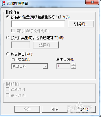 点击右侧“添加”按钮,弹出如下图所示对话框,在这里我们可以通过文件位置,文件类型,和文件日期进行添加。这里以按文件位置进行添加为例进行演示。