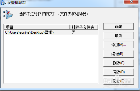 点击该页面中的“排除项”按钮,弹出如下图所示对话框