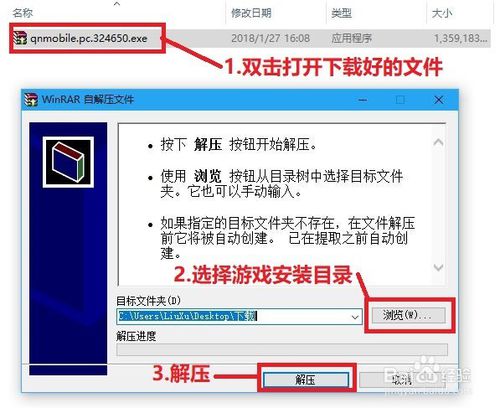 2.接下来,打开下载好的文件,选择游戏安装目录,解压软件。