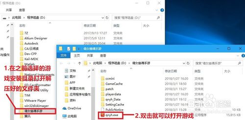 3.然后,解压完成后进入游戏安装目录,打开“倩女幽魂手游”文件夹,打开“qnyh.exe”就可以打开游戏了。