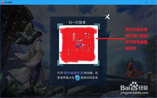 4.最后,在游戏登陆界面选择服务器点击登陆游戏,在手机上打开倩女游戏在登陆界面扫描二维码即可用电脑登陆游戏。