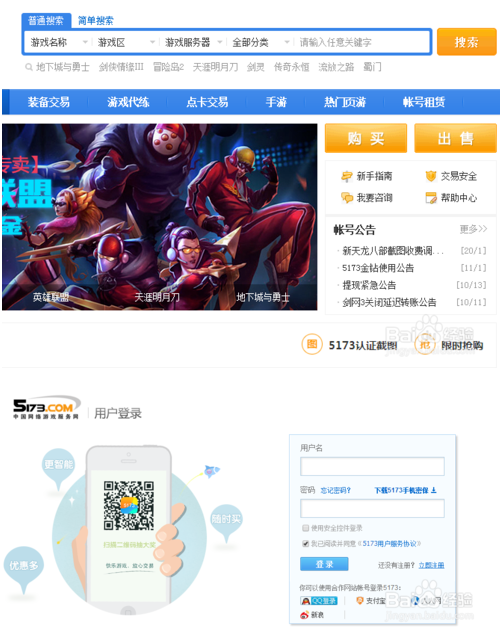 2、进入5173页面,点进账号交易页面。