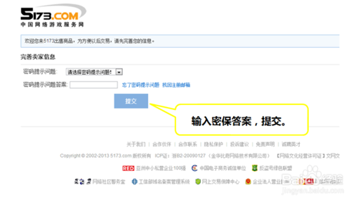 6、输入保密答案,提交。