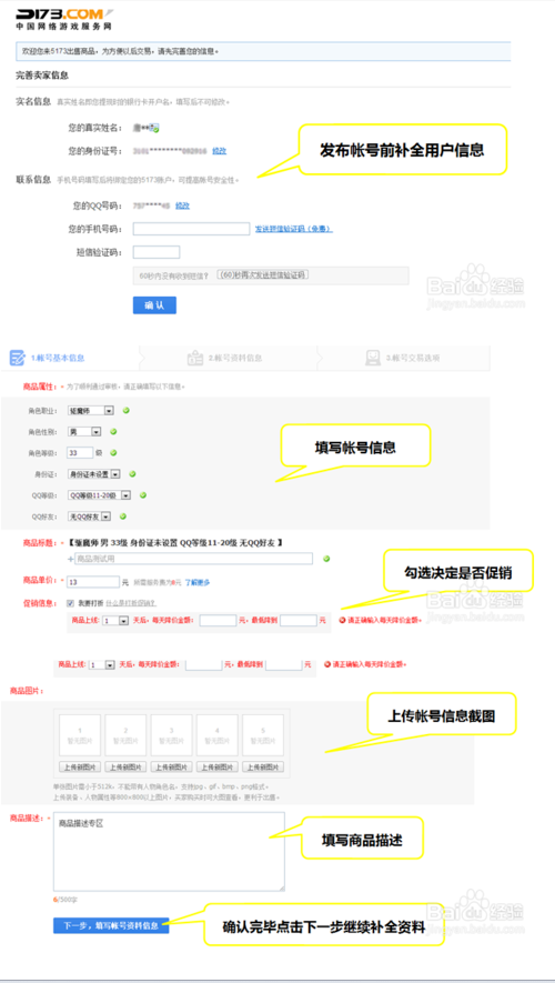 7、 发布账号前不全用户信息。