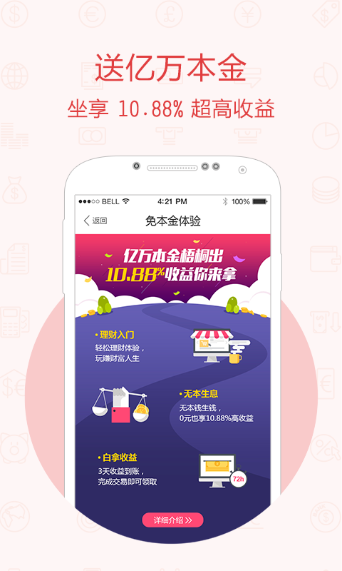 千元起投,预期年化收益率为8%-10%。具有低门槛、高收益、随时购买、随时变现的特点。