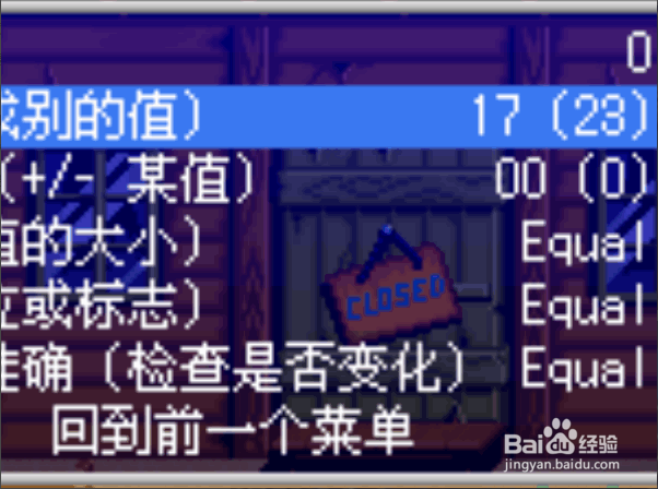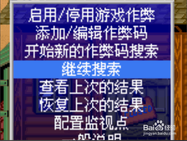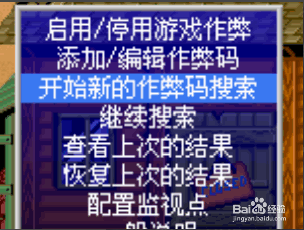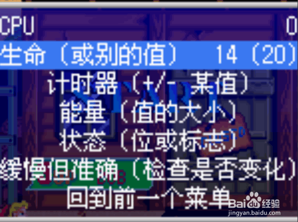 选择“开始新的作弊码搜索”,回车键进入。选择“生命(或别的值)”,按方向键左右进行数字调整,前面的数字是16进制,括号中的是10进制,最大可搜索的数字是255。