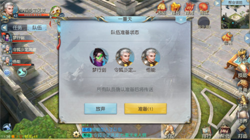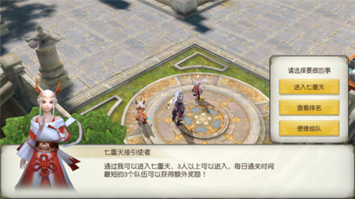 如果玩家想要参加这个日常活动,则首先需要有一个帮派,并且帮派所拥有的玩家人数要》3个人才可以,毕竟是参与该项活动的玩家都需要同一个帮派的人才可以进行的。在进行组队之后,去帮会领地里面的NPC“七重天接引使”选择进入七重天。