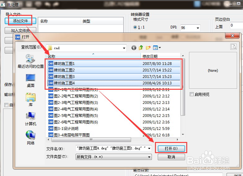 5、转换格式或版本的添加文件环节,点击批处理左上角添加文件,接着选择需要转换的文件,点击打开。