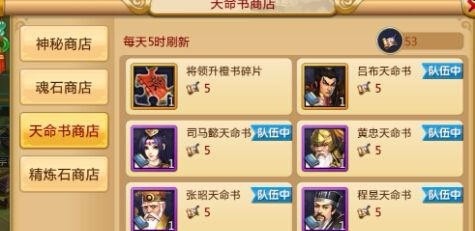 除了活动会送外,我们还能在商店里通过消耗5个天书残页兑换1个碎片,而天书残页则可以通过分解将领天命书获得。将领天命书又能通过将领魂石合成。所以一整套流程就是:获得魂石→合成天命书→分解为天书残页→兑换升橙书碎片。