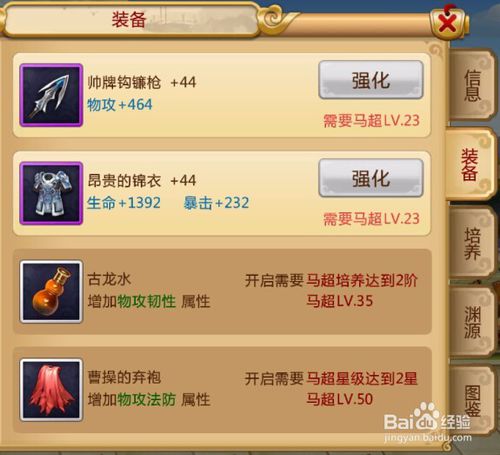 武将达到一定的等级,武将的装备就可以升级,装备会提供一定的属性加成。