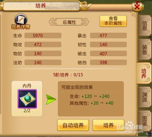 将领的培养需要官职到达辅军领军才可以开启,可以使用内丹来提升将领的属性,培养等级分为普通、良好、优秀、卓越、完美,一阶只能培养五次,阶级越高可培养次数越多