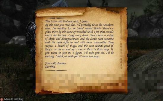 他尝试着找出事件的原委,于是打开道具栏,重新阅读DarPha写来的那封信,这座小岛有人雇佣她调查一起绑架案,她约主角一起来岛侦察。
