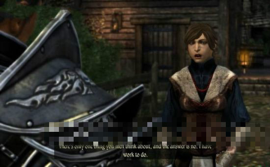 进到村镇,看到一名叫Edain的少女和镇长在说话。这名少女见到主角,一脸的不高兴,还没等主角询问,就一句话给否定掉,这火暴脾气。