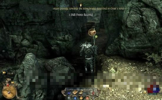 往地图的西北方行进,在石壁上找到一道门,用欧利昂的石钥匙打开它,穿行到另一边。