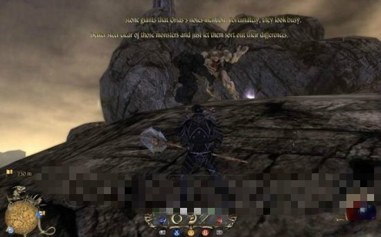 在山道上遇到两只战斗的石巨人,不用理会它们,沿着山道继续走。