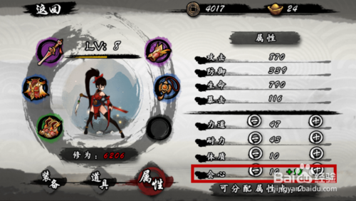 当然为了避免攻击力不足和暴击力不够的情况,我们在等级略高的时候,可以选择“3:1”的比列加力道和会心,这样攻击和暴击就比较均衡啦,一般需要有一定的操作的朋友可以这样加点,也是高手的必经之路,如图所示。