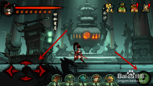 之后我们在秘境中,通过左下角的方向按键,和右侧的向上按键,我们向上跳起,可以在上面的平台上,找到”鬼神阵“,如图所示。