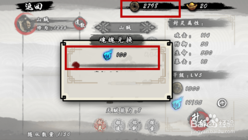 之后我们还需要有一定数量的铜币和魂魄才能进行随从升级,我们在游戏中即可获取,魂魄如果不够肯能还需要购买,如图所示。