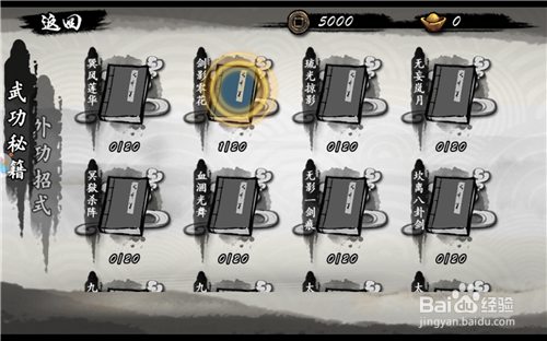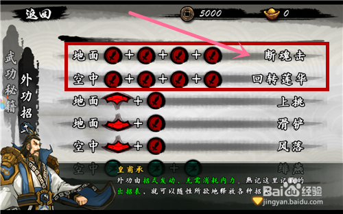 如图。进入技能列表后,可以发现两类技能:一是内功,一是外招。内功就相当于技能,需要消耗内力值,外功就是连招物理技能。