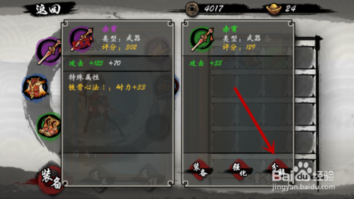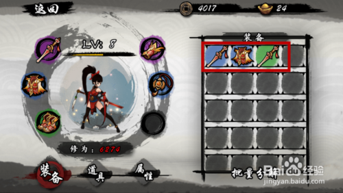 之后我们在装备栏中,点击一下要分解的装备,如图所示。