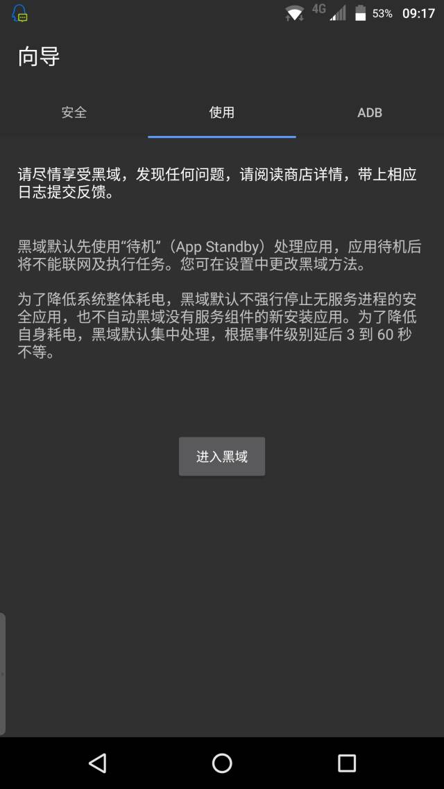 1.黑域通过事件智能判断您是否在使用应用,当您打开某个应用,使用完退出(如按“返回”)以后,黑域会待机它;2.待机超时,或者从最近列表划掉它,黑域会强行停止它;
