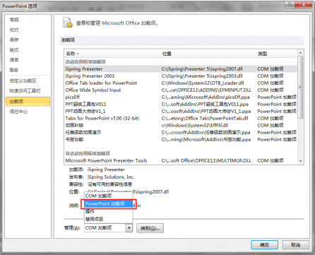 2、*.dll:这是用一些编程软件接入PPT中编译所生成的COM加载项。安装这个插件呢,laose提供的大都是bat文件进行注册。2010版本中手工安装方法如下: