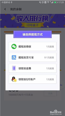 我们玩“闪电盒子”目的是为了提现,那么我们应该选择哪种提现方式呢?个人举得哪个门槛低,我们就选择哪个提现,很明显,我们最好选择支付宝去提现,因为满足0.1元就可以提现了,微信需要1元~