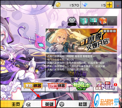 首先,打开游戏主页面,在下方点击英雄,如图所示