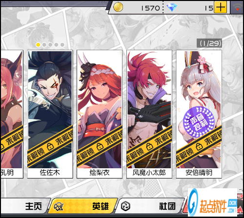 打开页面后可以看见很多英雄,很多都没有解锁,如图所示