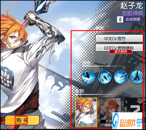 打开该英雄的页面后,上面的有的技能,下面是皮肤,如图所示