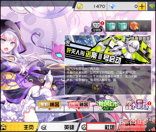 打开300大作战手游程序,在右下方点击社团,如图所示