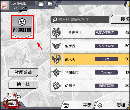 如果要建立自己的社团,则在左上方点击创建社团,,如图所示