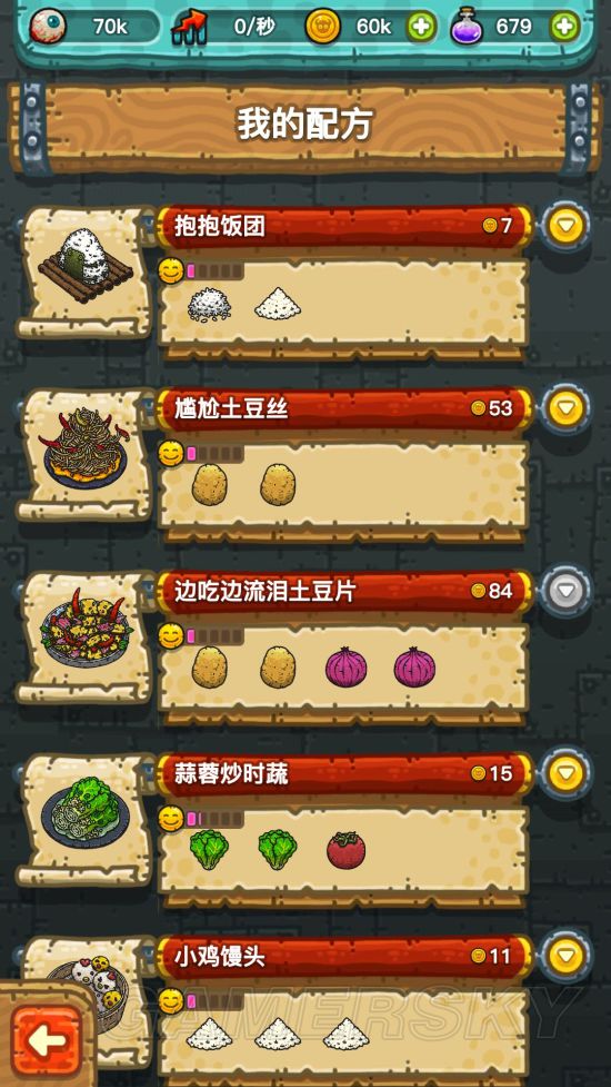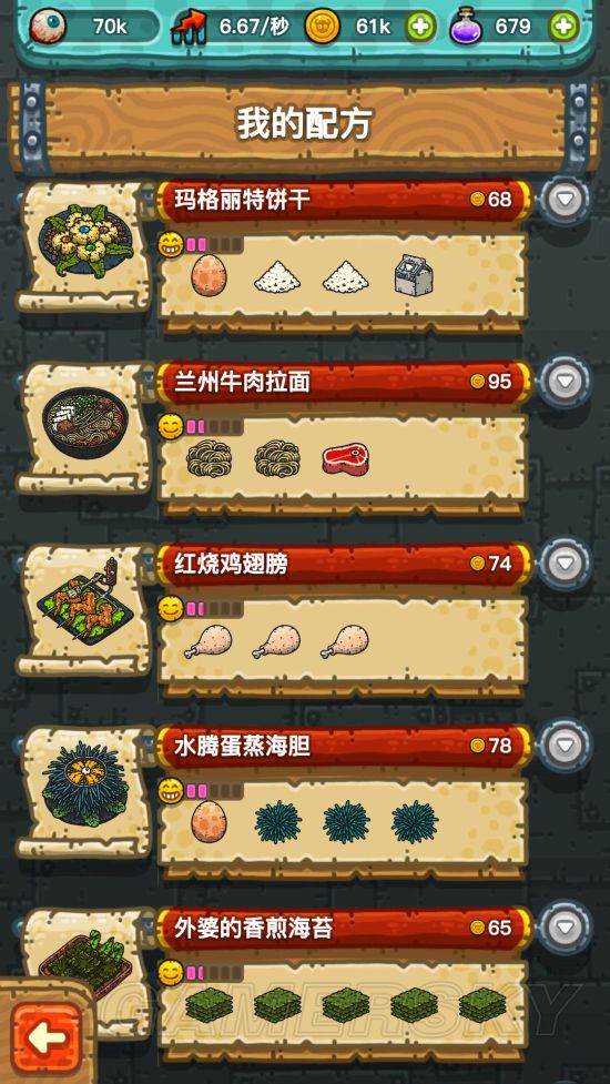 10.每个料理都有不同的配方,其中皇冠配方即最佳配方。
