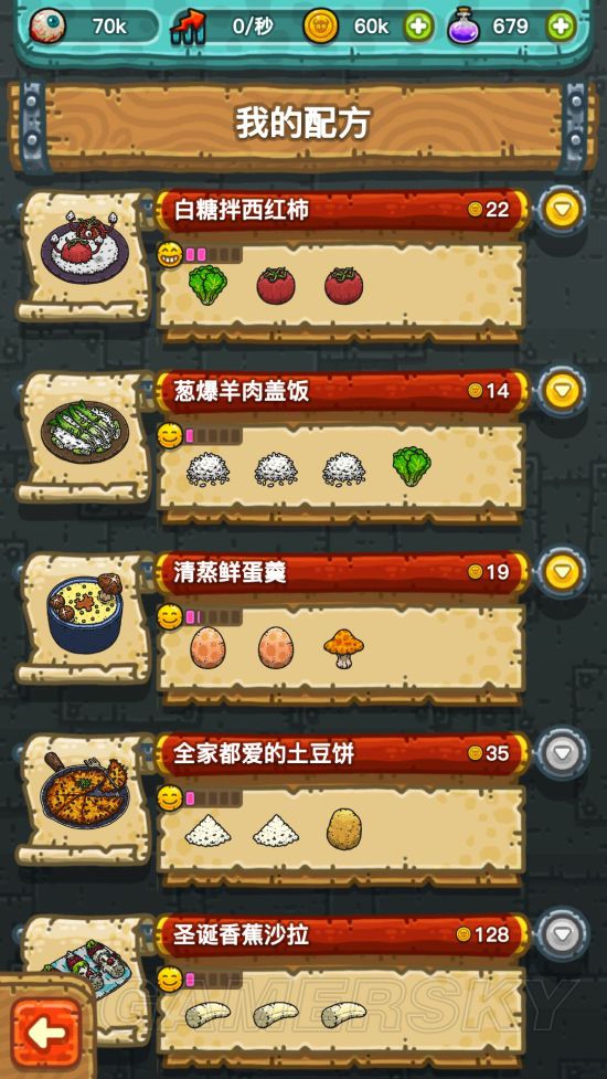 黑暗料理王食谱配方一览游戏目前总共有110种菜谱,具体如下:
