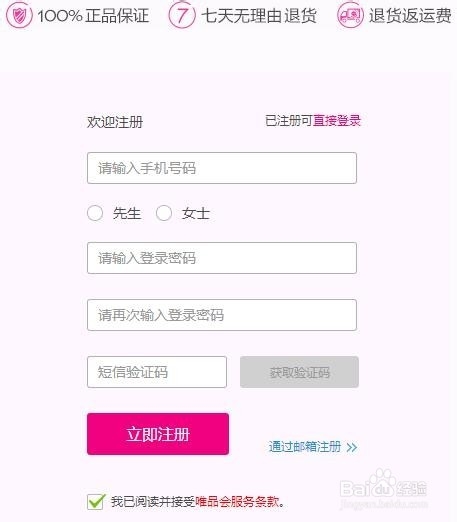 唯品会怎么注册?进入唯品会首页,点击左上角的“免费注册”