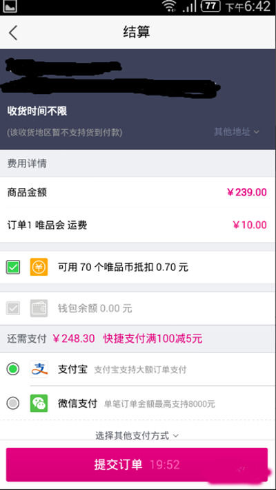 点击付款后,输入自己的地址,选择自己的支付方式,例如:网银支付、支付宝支付等等。选择好后,点击提交订单,进行付款。这样就算完成了购物。