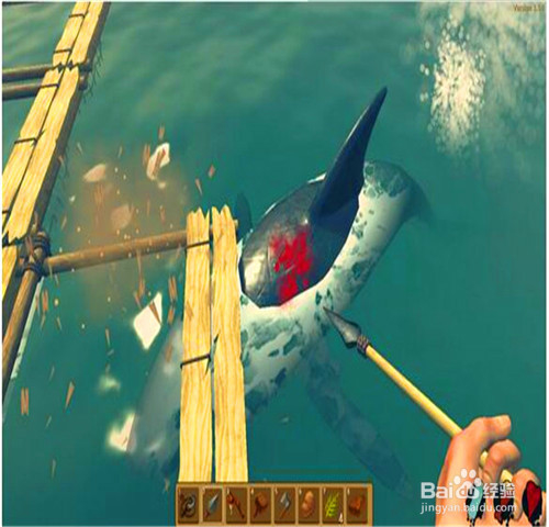 2、其次是你的存在,这样的话保证死不了后在开始制造一把长矛,游戏开始的时候鲨鱼一定会过来啃木板很伤,如果怕咬到放物品的木板,这时候就要多注意了,否则的话,游戏还没有开始就介绍了,如果运气好的话就可以多造木桶和长矛。