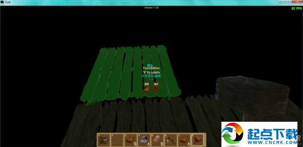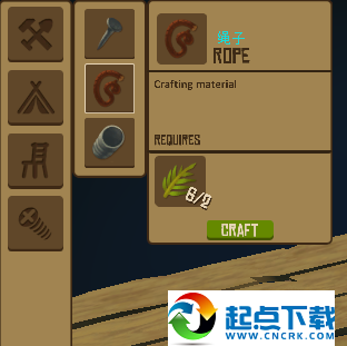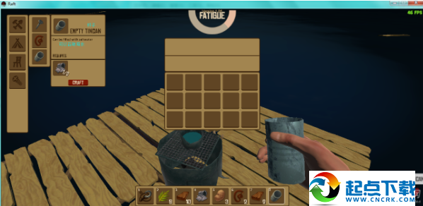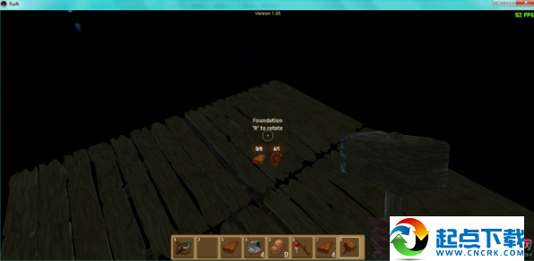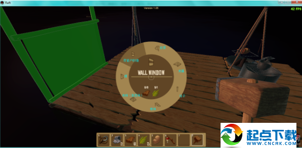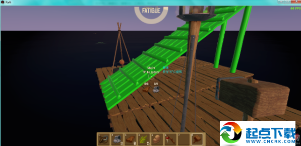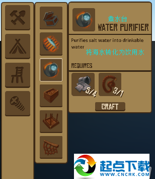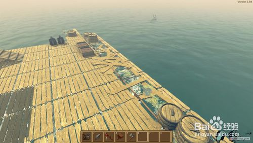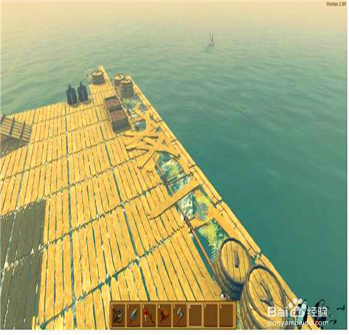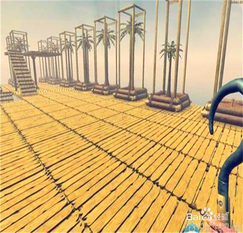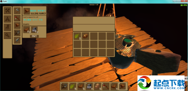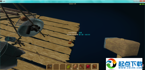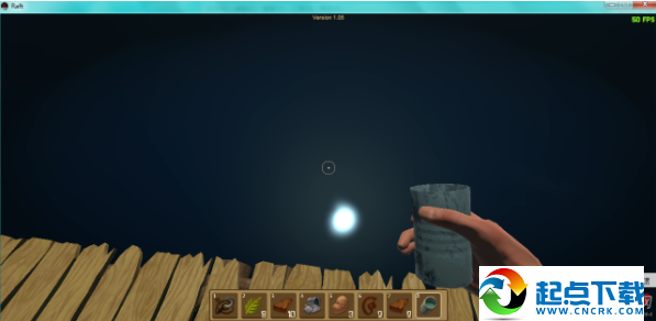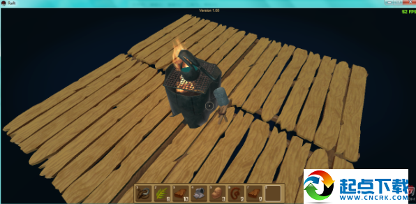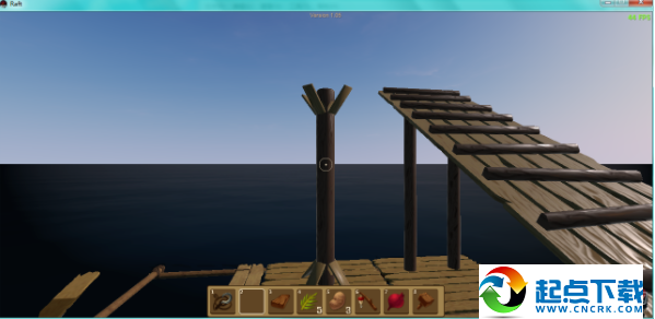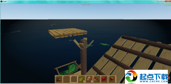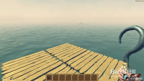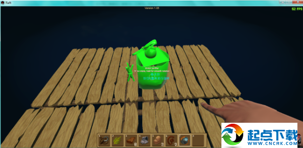 1、开局在一块2×2的木板上,并且自带一个钩子。开局时首先要做的是想办法够到尽量多的废铁和木头,做成净水器,因为水分下降速度较快。