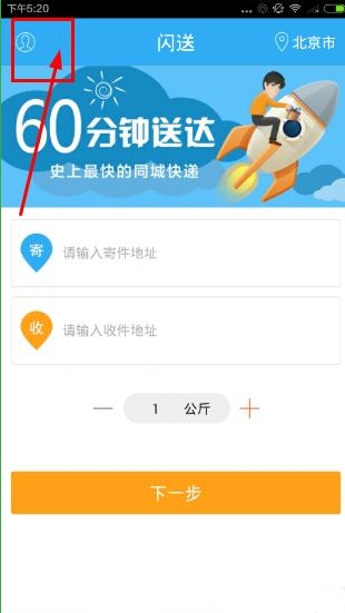一、闪送app快速抢单教程1、打开闪送app,点击首页的左上角的图标