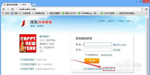进入搜狐邮箱主界面以后,在登录按钮下面有“现在注册”链接,如图: