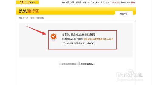 提交注册信息后,耐心等待几秒,系统会提示注册完成,注册成功后,系统会自动跳转到成功页面,这样搜狐邮箱就注册完成了,如图: