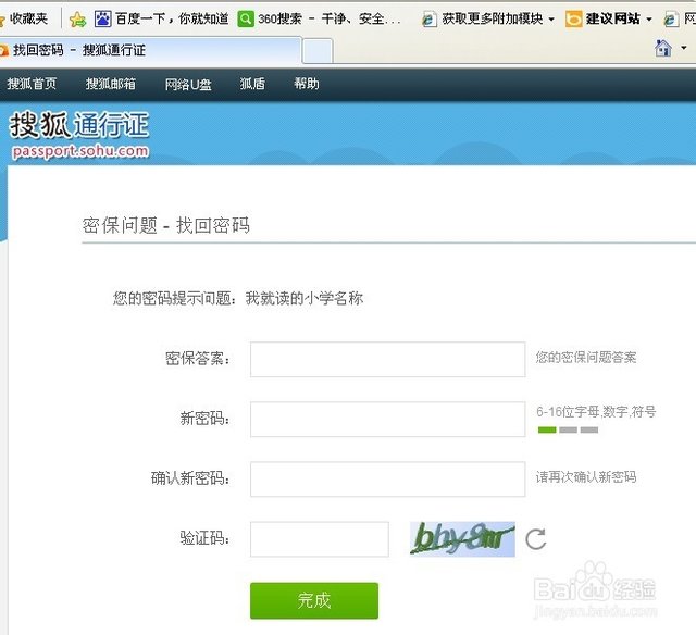 输入开通邮箱时的密码提示问题。如图设置新的密码。
