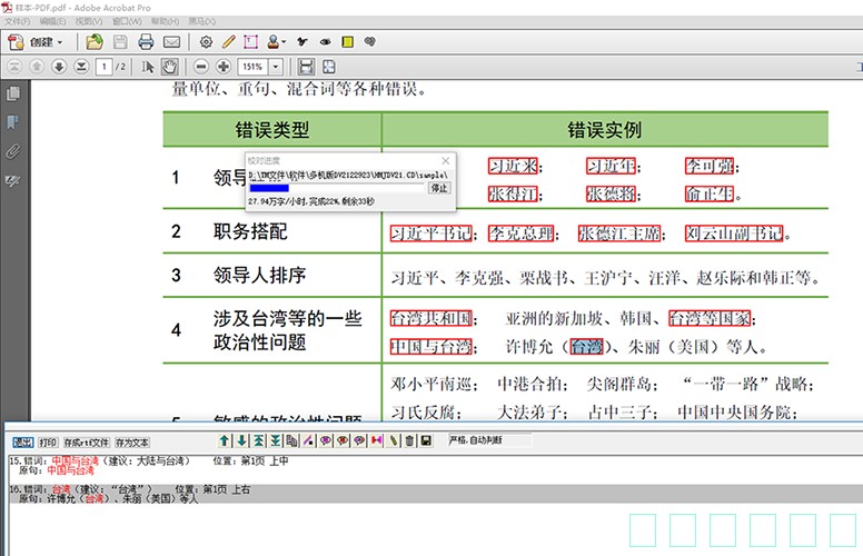 2、精确校对涉及台湾和其他敏感的政治性错误。