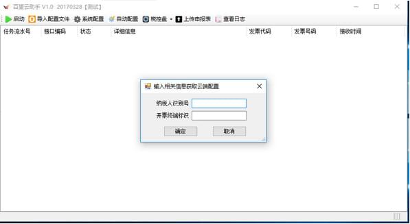 3.打开百望云助手,点击自动配置,输入纳税人识别号和开票点代码。