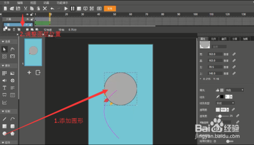鼠标按照“圆”图层最后一帧不放,将其向前拖动至16帧,缩小圆形动画的运动时间