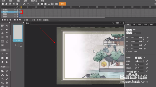 新建图层,在第3帧插入帧,插入关键帧,同时添加进长图背景素材